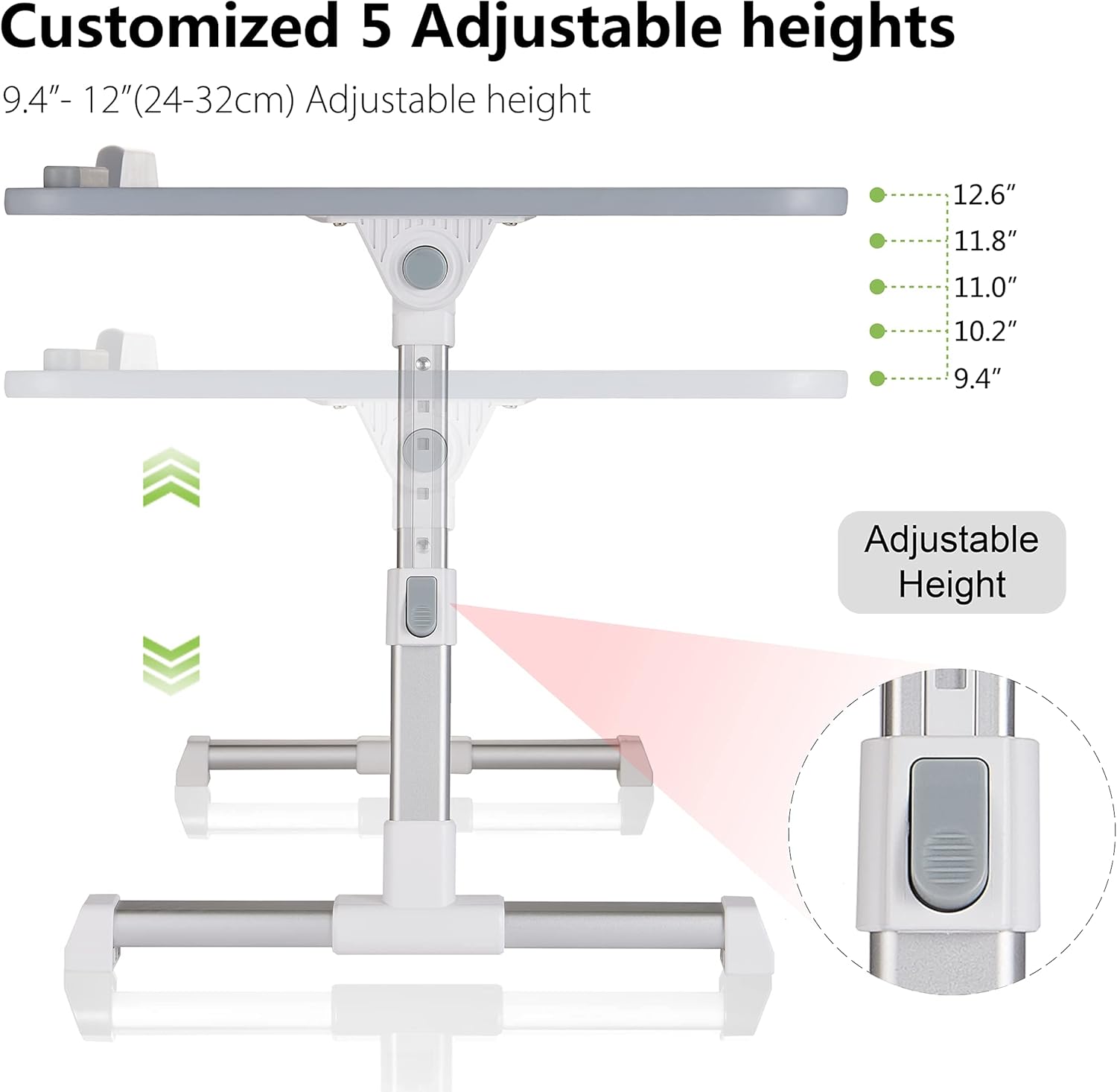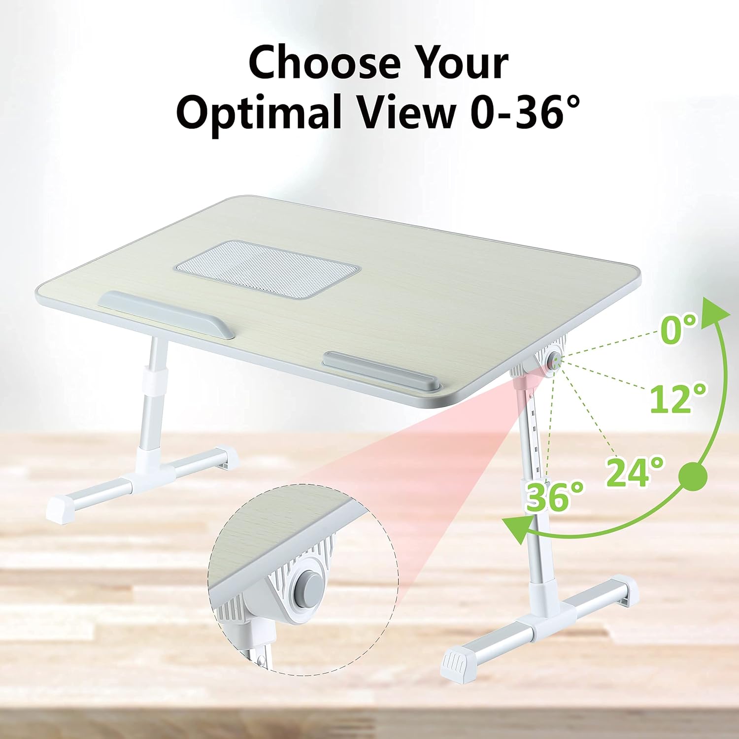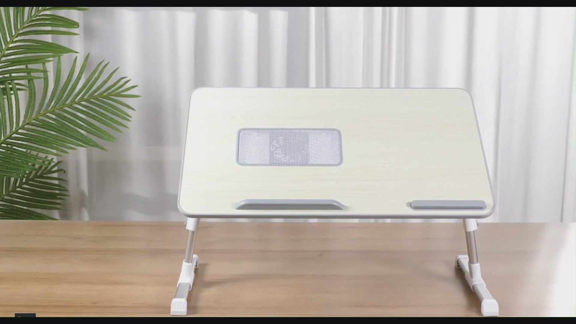 Highly adjustable table for laptops and tablets for healthier and more comfortable postures with built in ventilation fan to keep your device cooler