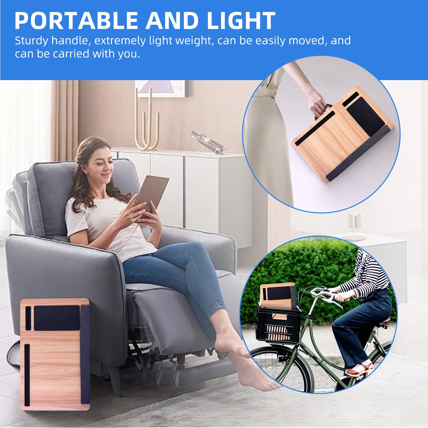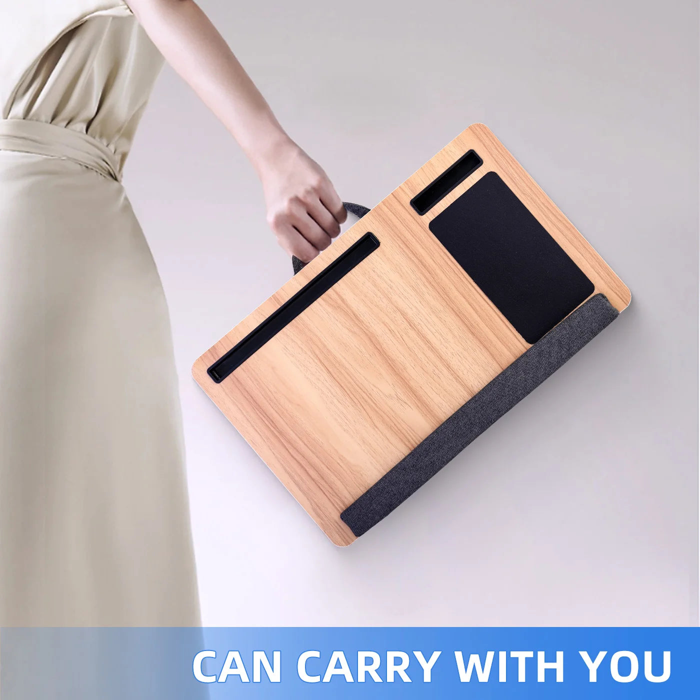 【PORTABLE & LIGHTWEIGHT】This lap desk with a sturdy handle is extremely lightweight, so not much pressure on your legs at all, and it can be easily moved, you can take it everywhere. Not only allows you to work at home, office, dorm, school, bed, or couch, but also easily take it to the car, plane, and travel.