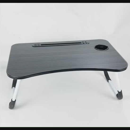 portable scratch resistant laptop table for office and home use with USB light, small fan, cup holder, tablet slot, pen slot and premium drawer